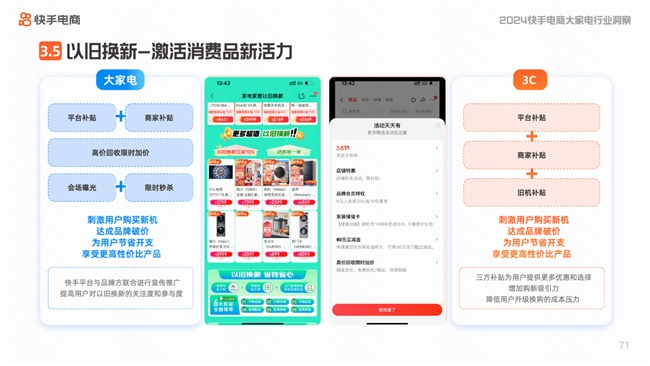 為進(jìn)一步激活消費(fèi)活力,快手電商還將推出以舊換新活動(dòng),在大家電及3C行業(yè)內(nèi),通過補(bǔ)貼扶持、活動(dòng)宣推、增值服務(wù)等增強(qiáng)活動(dòng)曝光力和影響力,帶動(dòng)用戶購(gòu)新消費(fèi)活力,從而促進(jìn)消電家居商家銷量聲量雙重爆發(fā)。