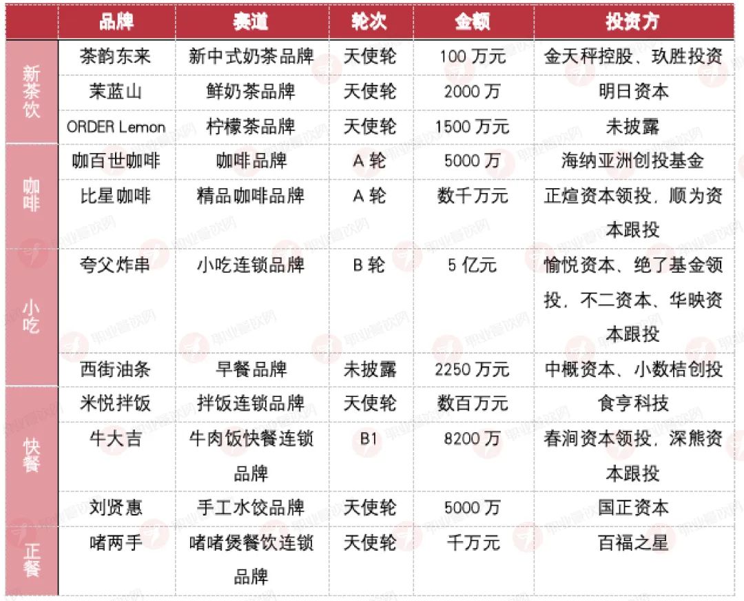 今年年初,來自咖啡茶飲、快餐、小吃等賽道的一批連鎖餐飲品牌,扎堆獲得融資,得到多家資本青睞。