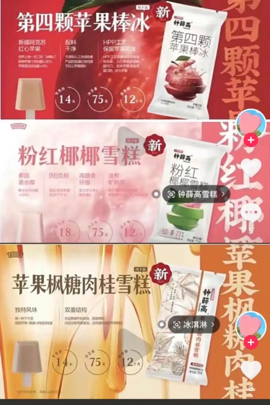 在社交平臺上,有經(jīng)銷商流傳疑似鐘薛高的新品圖,鐘薛高2024年會推出第四顆蘋果棒冰、粉紅椰耶、蘋果楓糖肉桂新口味。