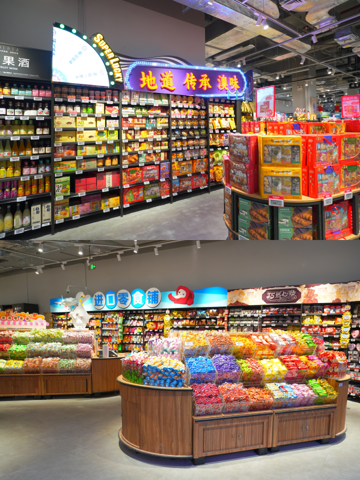 店內(nèi)還專門打造澳門特產(chǎn)區(qū)和川湘特產(chǎn)區(qū),供顧客一站式挑選,輕松把地方特色風味帶回家。