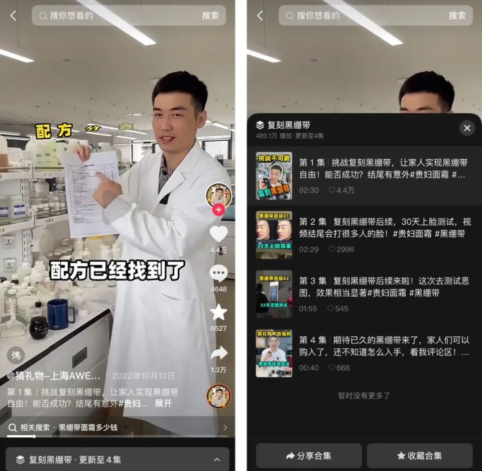 為了博眼球、吸流量,故意利用消費(fèi)者的認(rèn)知盲點(diǎn)的“作秀”,在美妝圈并不少見。之前在抖音平臺上就有自媒體賬號針對知名品牌“赫蓮娜HR”的“黑繃帶”面霜產(chǎn)品,暗諷其就是“智商稅”,聲稱“黑繃帶”并沒有那么多科技含量,拍攝了一組“挑戰(zhàn)復(fù)刻黑繃帶、讓家人實現(xiàn)黑繃帶自由”的視頻,并售賣其復(fù)刻的“黑繃帶”產(chǎn)品。