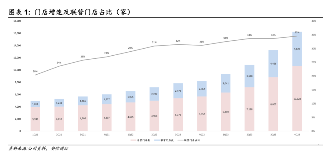 瑞幸自營和聯(lián)營門店增速及占比