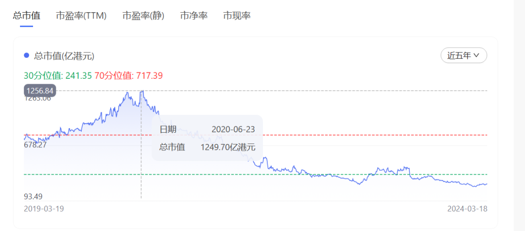 從市值上看,2020年中旬高鑫零售市值高點超過1200億,而目前市值才100億出頭。