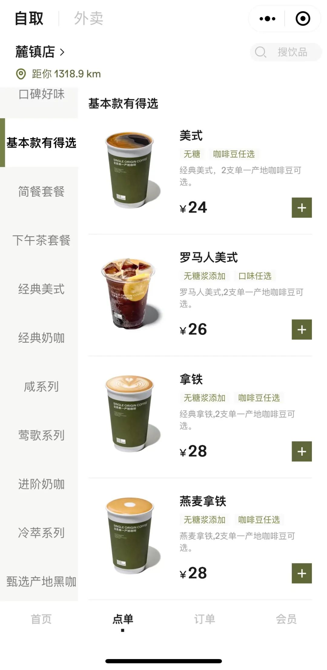 從Grid Coffee點單小程序上可以看到,目前各個門店的品類非常統(tǒng)一,不打花里胡哨的奶茶咖啡,主做經(jīng)典款咖啡。