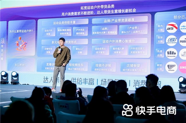 除了展示男裝運動戶外2024的潮流風向,本次杭州雙選會現(xiàn)場,快手電商也邀請了Googims、駱駝、伯希和等眾多運動戶外品牌商家現(xiàn)場布展,并設置雙選會環(huán)節(jié)邀請達人與品牌現(xiàn)場選品交流,促成后續(xù)帶貨合作。借助雙選會的現(xiàn)場撮合及2024年扶持政策發(fā)布,相信越來越多男裝運動商家將能更快在快手建立經(jīng)營陣地,并在2024年收獲生意快速增長與爆發(fā)。
