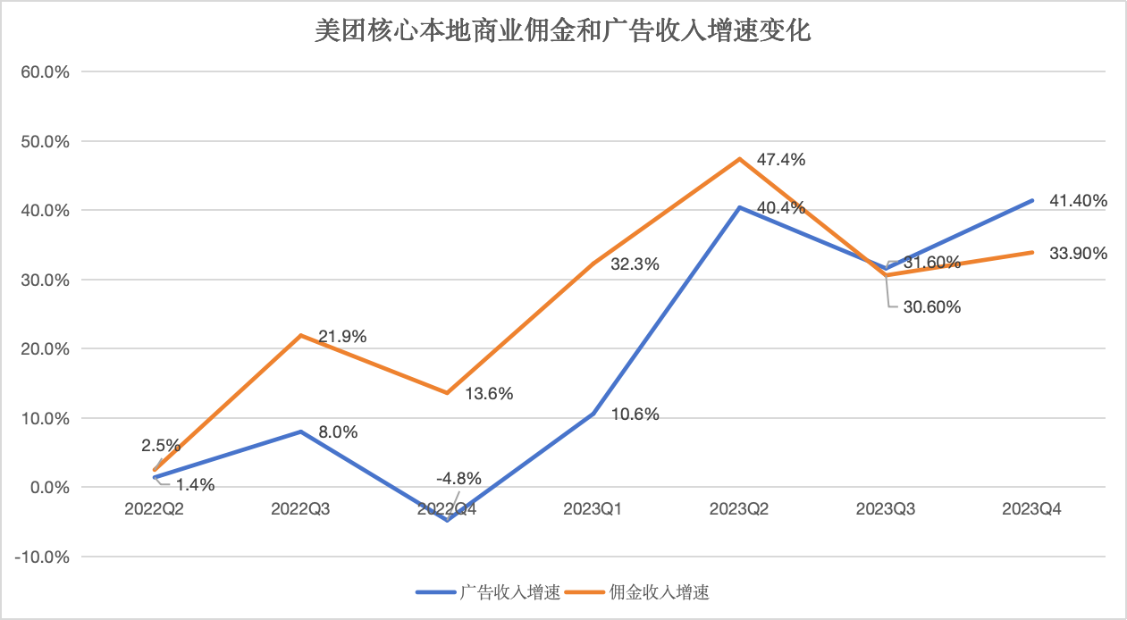 美團(tuán)核心本地商業(yè)傭金和廣告收入增速變化 數(shù)據(jù)來源:美團(tuán)財(cái)報(bào)