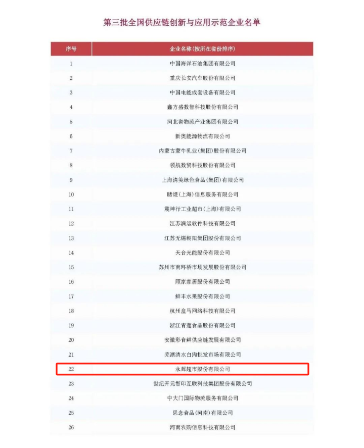 永輝超市入選全國供應(yīng)鏈創(chuàng)新與應(yīng)用示范企業(yè)名單