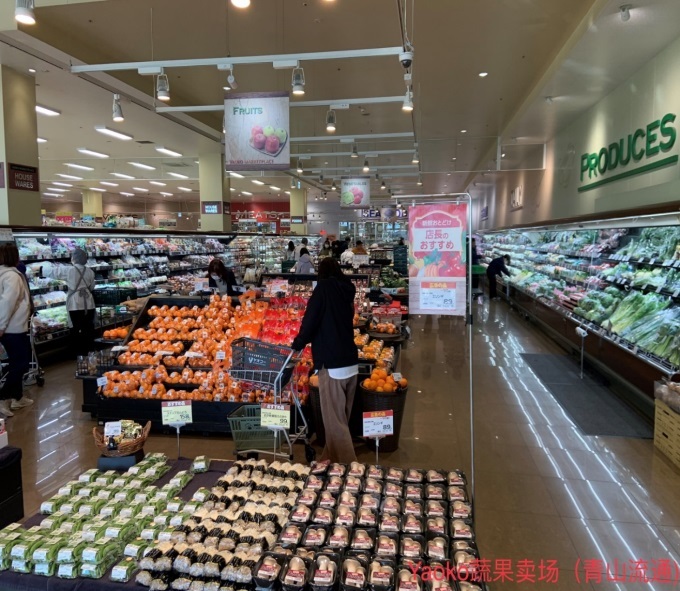 我們看這就是八百幸店鋪的賣場(chǎng)。日本食品超市的水果蔬菜賣場(chǎng)往往放在店的入口處,突出季節(jié)性和時(shí)令感。水果蔬菜容易突出季節(jié)性,水果蔬菜顏色很鮮亮,讓人愉悅,會(huì)帶來一種“逛“的愉悅感和興奮感,一到店里就興奮起來了。大家有機(jī)會(huì)去日本考察的時(shí)候,一定要先站在店門口觀察幾分鐘,不要直接進(jìn)去,看它整個(gè)氛圍對(duì)你是不是有魅力?理解店鋪的Sense感,有沒有吸引力?吸引的都是哪些客層?(觀察客層)。
