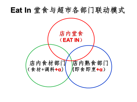 但大家要注意,此處的堂食,一定要自己做,用超市的食材+熟食一起做堂食,不要將堂食與超市割裂,這才是其正真的含義,而不要外包給第三方,否則便失去意義。