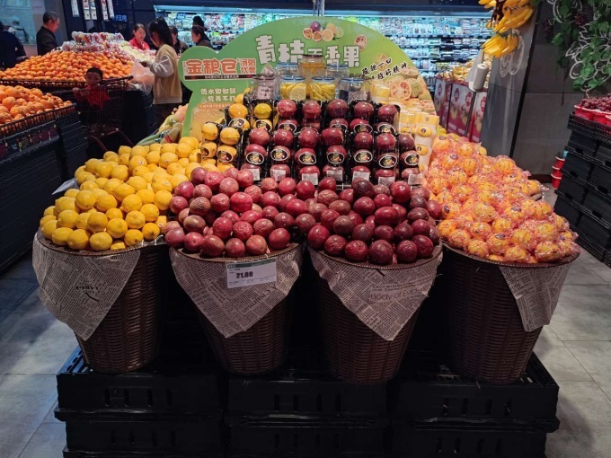 因?yàn)榛ü麍A居住人口是50萬(wàn),我們店主要是以生鮮為主,生鮮經(jīng)營(yíng)面積2200㎡,充分體現(xiàn)惠民生鮮超市的公益性質(zhì)。各類生鮮農(nóng)產(chǎn)品價(jià)格比周邊農(nóng)貿(mào)市場(chǎng)低10%-30%,比周邊社會(huì)化超市低5%-20%,并且商品品質(zhì)更好,得到當(dāng)?shù)乩习傩盏囊恢潞迷u(píng)。我們主要以農(nóng)副產(chǎn)品的鮮度,管理品質(zhì),值得周邊居民的信任。貴陽(yáng)因?yàn)槿ツ甑拇宄由献窳x是歷史文化名城,我們?cè)O(shè)立了一些專區(qū)。