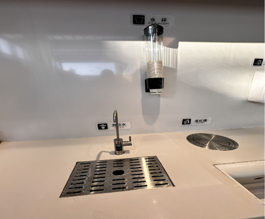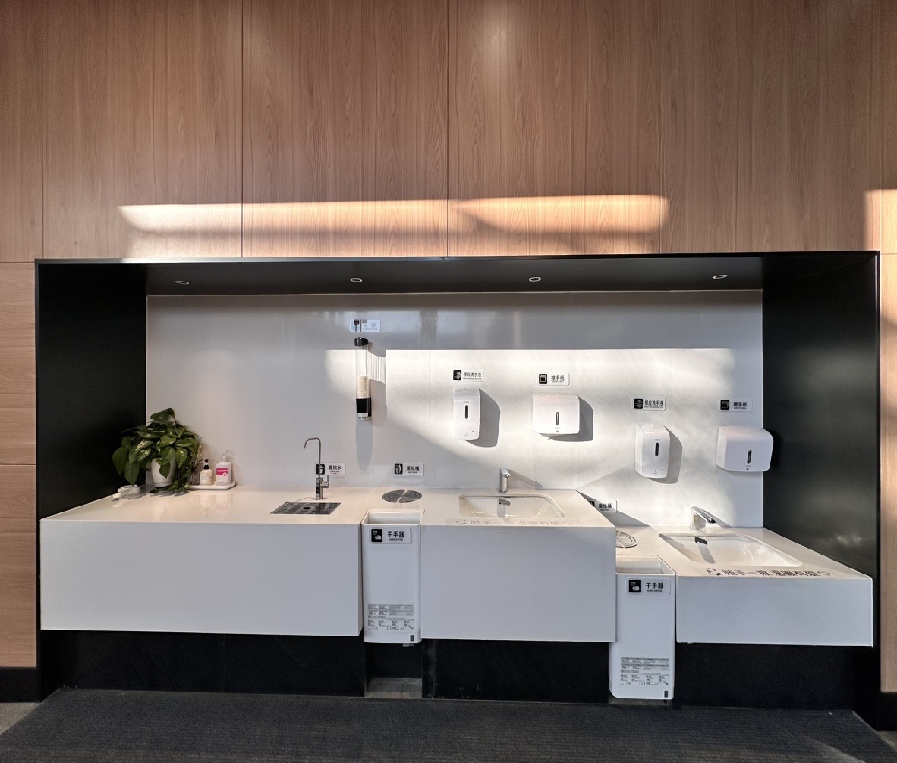 我們的洗手池都有熱水,免費提供洗手液、護手霜、紙巾等方面,我們在很多細節(jié)方面做了很大的提升和改變,包括飲用水和直飲水。