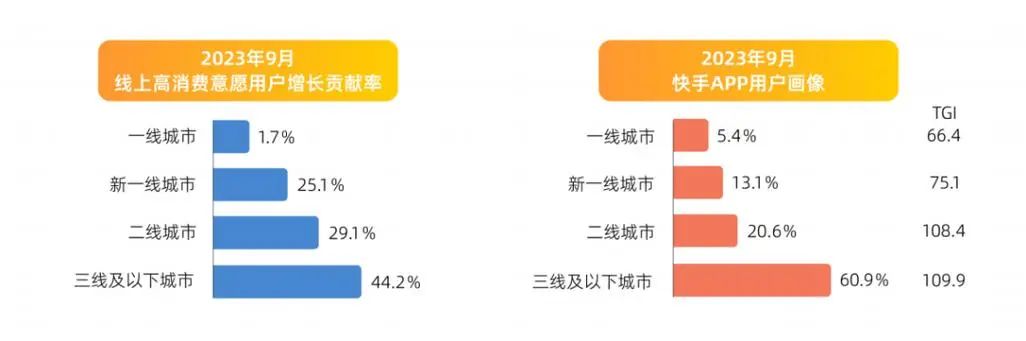 其次,從個(gè)人觀察來(lái)看,目前的經(jīng)濟(jì)下行,對(duì)一二線城市的中產(chǎn)階級(jí)的資產(chǎn)負(fù)債表沖擊還是比較大的,而對(duì)低線城市的影響似乎并沒(méi)有想象的那么大。我們看到疫情放開后,低線城市依舊有強(qiáng)大的消費(fèi)活力,即使疫情這幾年,拼多多依舊在高速增長(zhǎng)。所以我認(rèn)為, 短期低線城市的消費(fèi)潛力,可能要大于高線城市 ,這從快手的Q3消費(fèi)數(shù)據(jù)也能看到一些端倪。