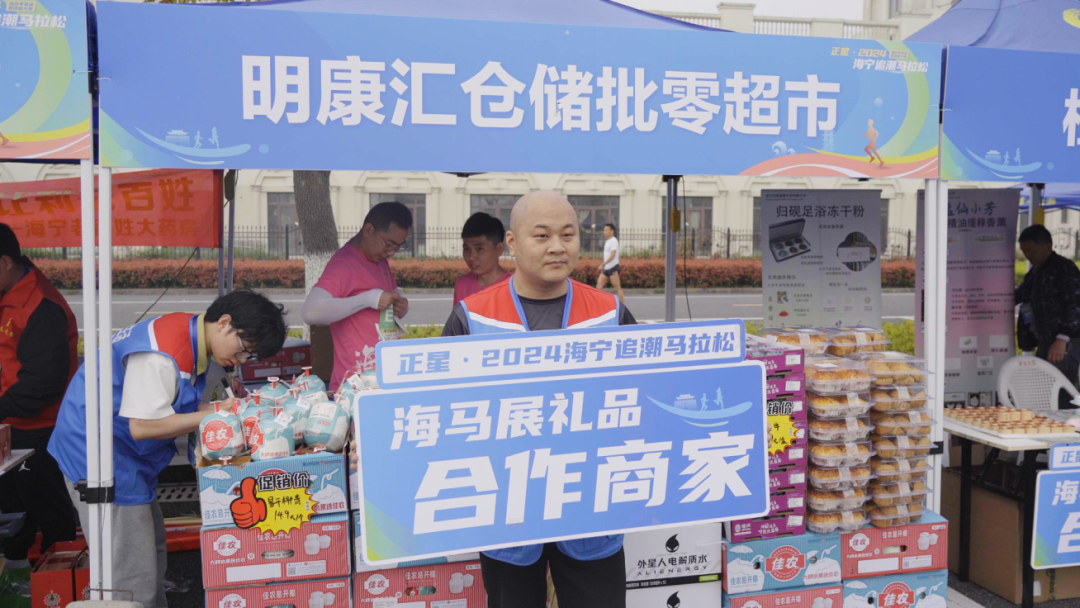 作為這屆海寧追潮馬拉松的官方合作伙伴,明康匯倉儲超市海寧育才路店駐店博士龐浩然表示,“現場看到大家這么活力滿滿、熱情洋溢的狀態(tài)非常受鼓舞。這次我們特地為大家準備了3600份精致的手提袋,為跑友和現場觀眾送來了補充水分和能量的水果飲料和零食,此外,為了表達對海寧追潮馬拉松的支持,我們的3名小伙伴還報名參加了迷你馬拉松,與大家一起‘追潮’!