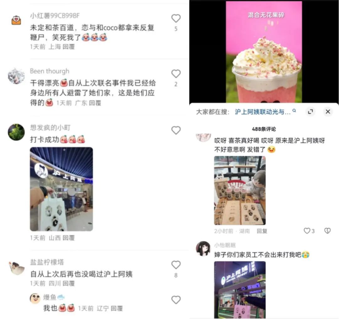 營銷翻車的影響長久而深遠(yuǎn),在這之后,每當(dāng)其他茶飲品牌聯(lián)名成功時,滬上阿姨總會被拉出來反復(fù)“鞭尸”。