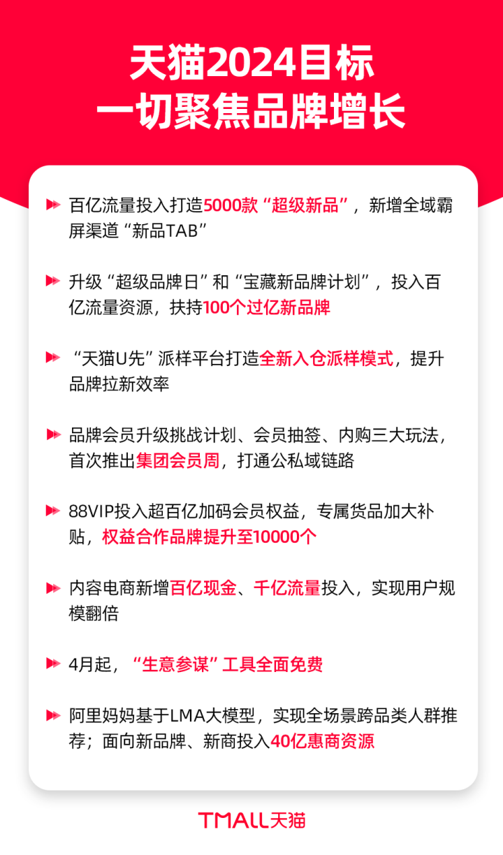 不同品類,增長機會不同。對天貓來說,加大投入規(guī)模,讓行業(yè)一線主導(dǎo)投入分配,目的很直接也很明確——更務(wù)實、有針對性地幫助商家尋找新增長點。做品牌最佳的陣地在天貓,2024年天貓TopTalk傳達這項再明顯不過的信號。