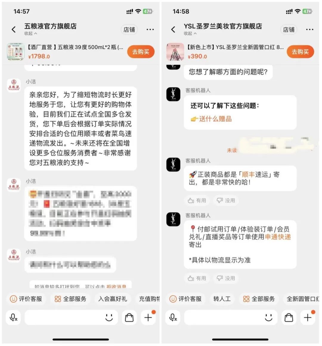 和林楊有著相同做法的還有不少高端商品賣家,如在天貓旗艦店中,包括YSL、五糧液基本走的都是順豐快遞。這背后正是極兔當(dāng)年靠拼多多起家導(dǎo)致消費(fèi)者對(duì)其品牌形象一直以中低端為主,商家為提高產(chǎn)品的高端屬性,自然需要京東物流、順豐等高端快遞進(jìn)行支撐。
