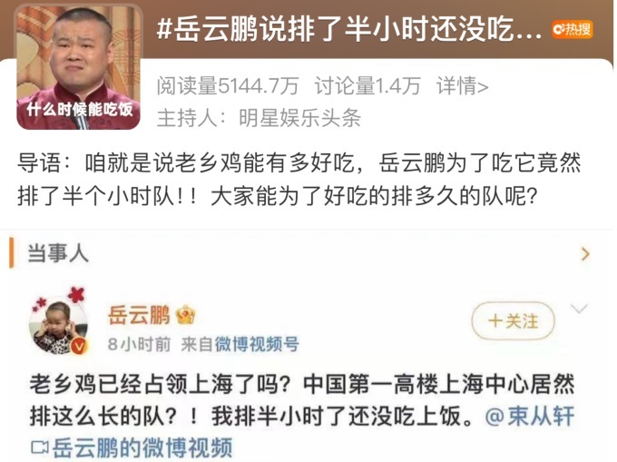 舉例來(lái)說(shuō),一些外地品牌會(huì)將上海中心視作打入上海市場(chǎng)的重要一站。如中式餐飲老鄉(xiāng)雞,將連續(xù)進(jìn)駐“中國(guó)第一高樓”“中國(guó)第二高樓”作為營(yíng)銷點(diǎn),“岳云鵬在上海中心老鄉(xiāng)雞店排了半小時(shí)隊(duì)”,也一度作為話題登上熱搜榜。