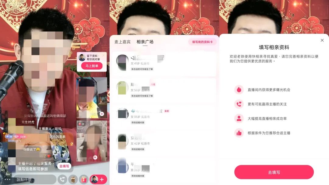 在2022年,快手上線了直播間“相親角”功能和“快招工”,并成立“房產(chǎn)業(yè)務(wù)中心”,線上直播賣房,線下老鐵帶看。據(jù)當時的數(shù)據(jù)顯示,快招工月活用戶規(guī)模超1億、入職轉(zhuǎn)化率超8%,快相親直播間同樣吸引了一批本土媒婆“數(shù) 字化轉(zhuǎn)型”。