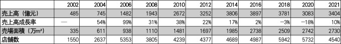 在這樣的發(fā)展歷史背景下,導(dǎo)致了中國的百貨店缺乏迅速應(yīng)對外部環(huán)境變化的經(jīng)營管理能力。因此當(dāng)外部環(huán)境發(fā)生大的改變時(shí),如表1所示,2012年開始銷售額增長率大幅放緩。2016年,銷售額增長率下降到2%,低于當(dāng)年銷售面積和門店數(shù)量的增長率,這說明公司業(yè)績不佳。2018年陷入負(fù)增長,2020年由于新型冠狀病毒等原因,業(yè)績受到了重大打擊。為了突破這樣一個(gè)艱難階段,許多百貨公司都在加速數(shù)字化轉(zhuǎn)型。