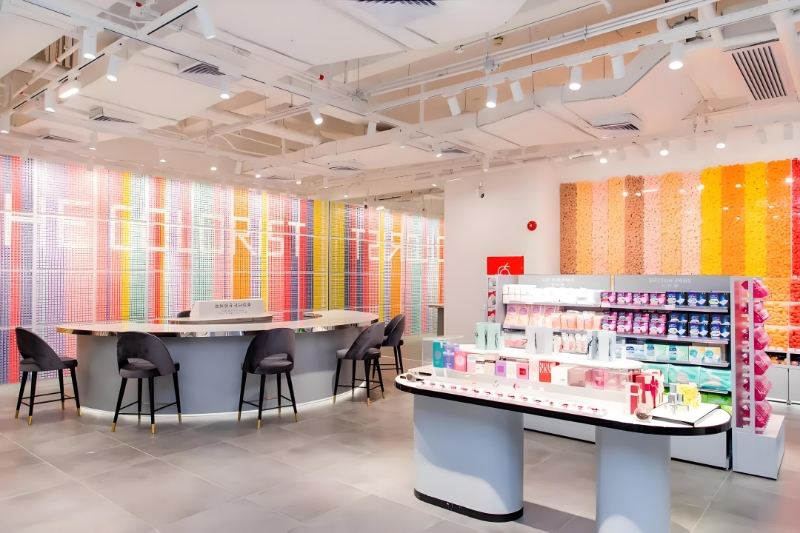 再者,不同于絲芙蘭高級(jí)莊嚴(yán)的“黑白”,以“WOW COLOUR”“H.EAT喜燃”“調(diào)色師”為代表的美妝集合店多以活潑的裝修風(fēng)格、輕松的購(gòu)物氛圍和愉悅的服務(wù)體驗(yàn)吸引年輕客戶群體,且更具創(chuàng)新動(dòng)力。