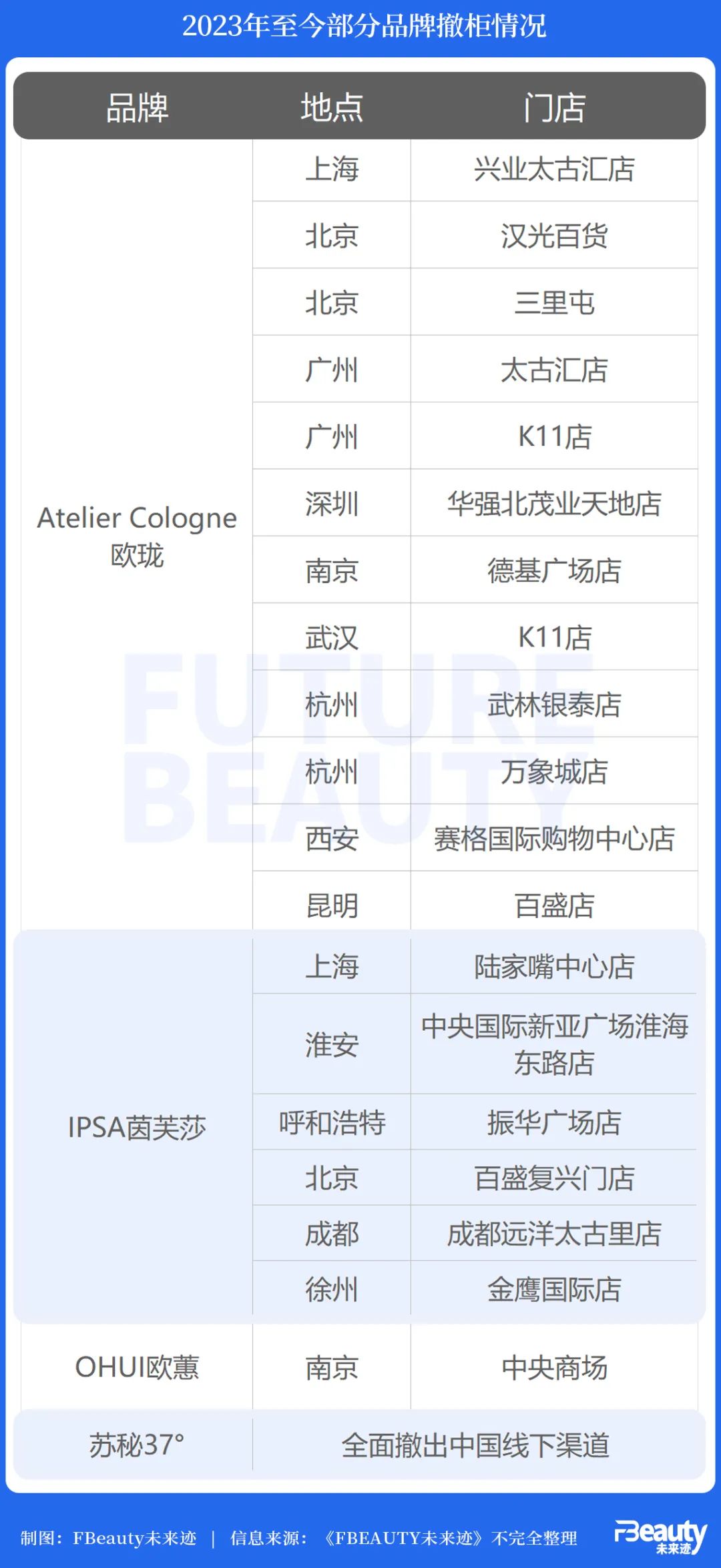 IPSA茵芙莎持續(xù)撤柜則主要與業(yè)績不佳和中國區(qū)渠道調(diào)整有關(guān);而OHUI歐蕙、蘇秘37°的撤柜則主要因集團(tuán)總體渠道策略的調(diào)整,此前曾有知情人士向《FBeauty未來跡》透露,歐蕙和蘇秘37°接下來除了布局線上,線下還將有可能深度分銷CS渠道。