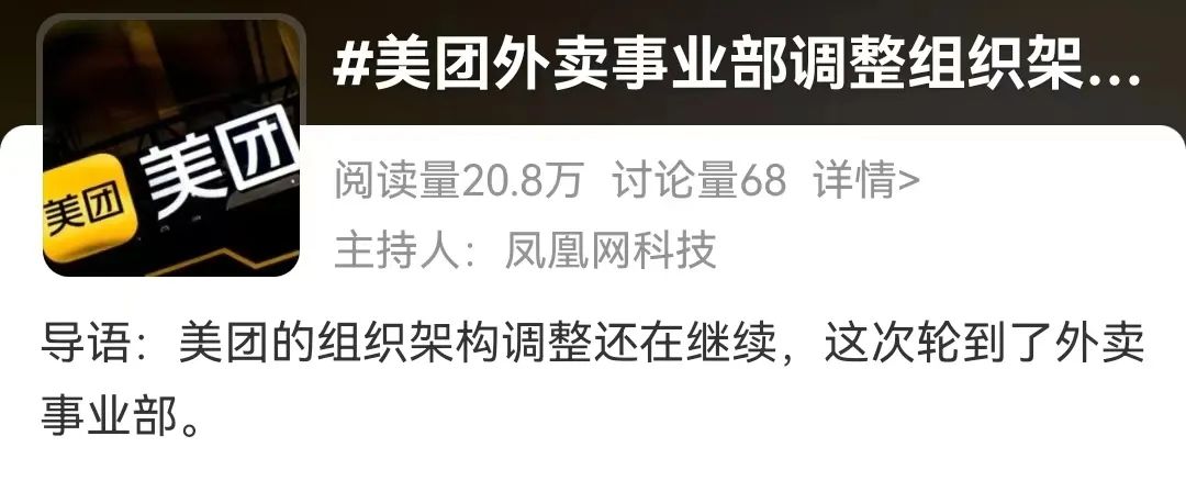 此次美團(tuán)外賣事業(yè)部的組織調(diào)整也是美團(tuán)前幾次調(diào)整的進(jìn)一步深化。
