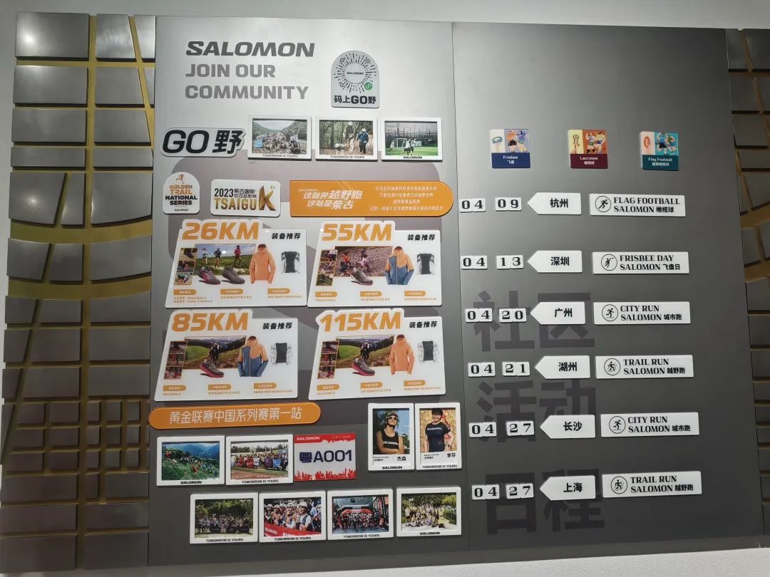 薩洛蒙門店內(nèi)賽事提示背景墻。圖片來(lái)源:受訪者供圖