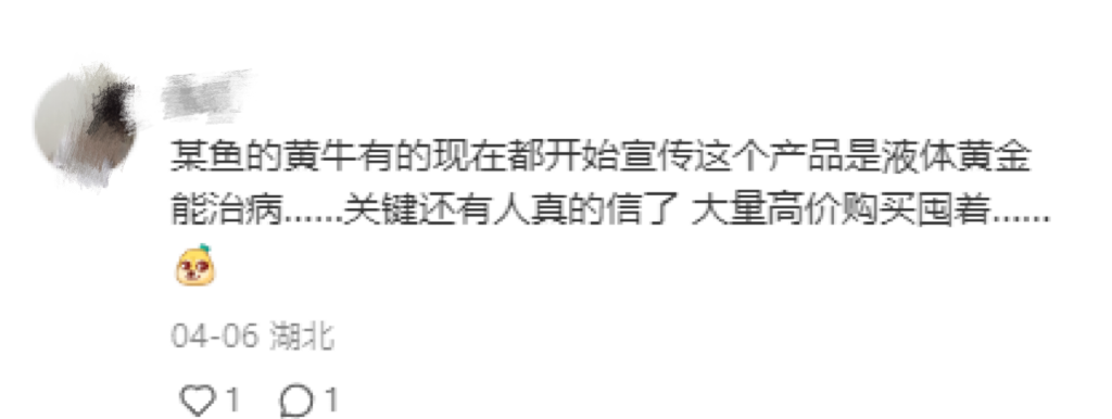 如今這瓶335毫升的龍井新茶化身新一代理財產(chǎn)品,8元的原價被已經(jīng)被黃牛們炒到40元以上。更有人為了出貨叫賣道:“這飲料是【液體黃金】,包治百病!