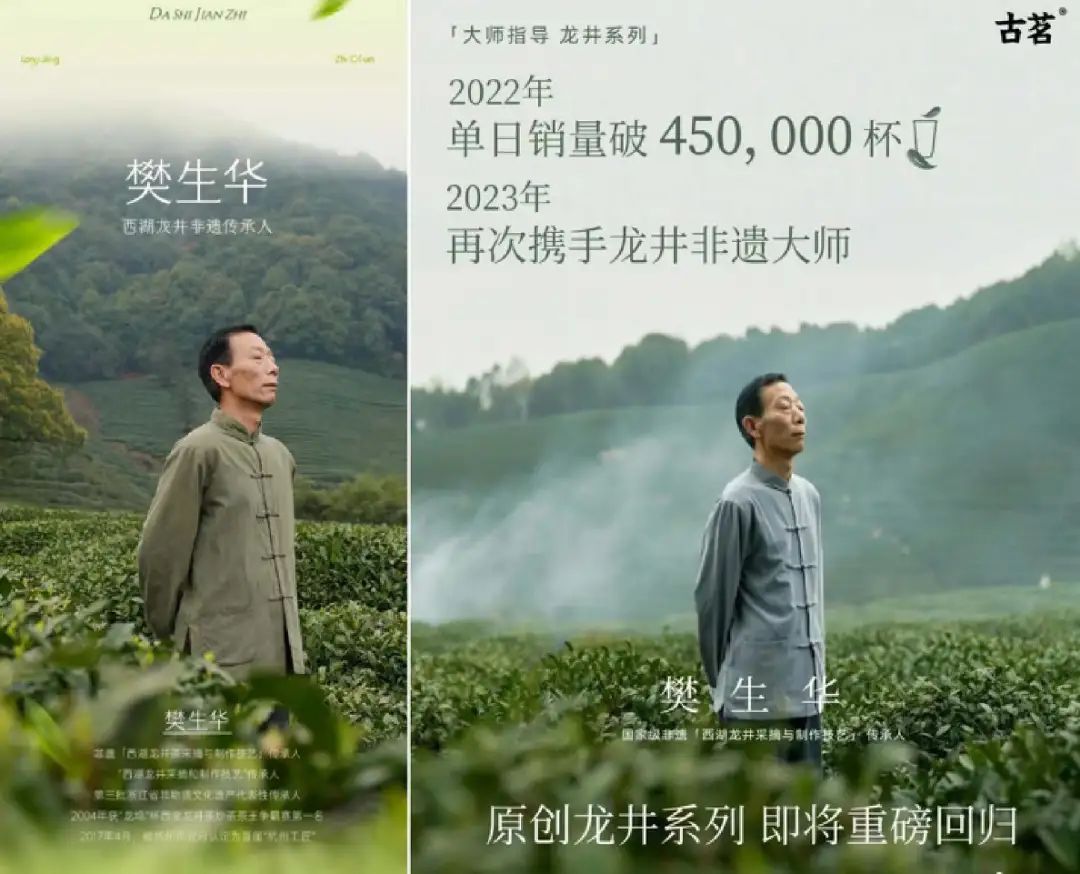 可惜的是,大師比特級茶還稀少。于是,就會產(chǎn)生和對家撞大師的場面。去年奈雪和古茗在清明前曾推出龍井系列,特邀專家都是西湖龍井非遺傳承人樊生華。