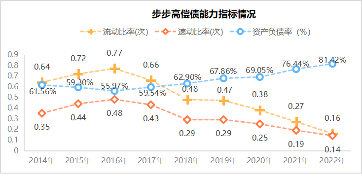 從數(shù)據(jù)上看,2018年開始,步步高的流動性已經(jīng)到了極低的水平,很難用流動資產(chǎn)來足額償還短期債務(wù),資金短缺風(fēng)險極高。