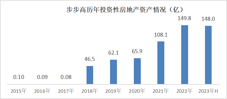 (2)在地產(chǎn)快速發(fā)展的背景下,王填大力投入搞商業(yè)地產(chǎn)。2009年起,王填把步步高集團(tuán)轉(zhuǎn)交給了外籍職業(yè)經(jīng)理人,自己積極投身商業(yè)地產(chǎn)。數(shù)據(jù)顯示,2008年-2017年的10年間,步步高累計出資超41億元投資房地產(chǎn);而2017年后,盡管王填意識到問題,卻進(jìn)一步擴(kuò)張其地產(chǎn)版圖,從2018年至2022年上半年,步步高累計投資近68億元用于自建地產(chǎn),例如長沙星城購物中心、懷化購物中心、邵陽購物中心等。據(jù)2023年半年報披露,步步高投資性房地產(chǎn)賬面金額約148億,而在建工程仍有109.73億。
