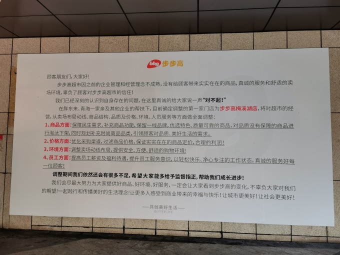我們看到,步步高的已經(jīng)發(fā)出了道歉信,改造店的營業(yè)時間和員工薪資都做了調(diào)整: