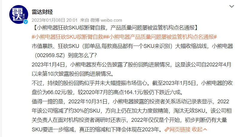 2022年,美的小家電選擇關(guān)停并轉(zhuǎn)了900多個(gè)SKU,總體約虧損2000多萬元。