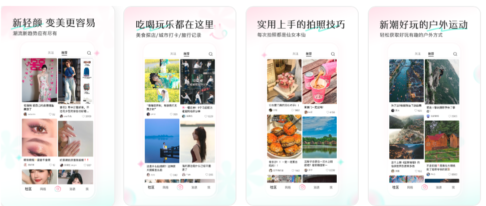 內(nèi)容主打穿搭靈感和教程,美妝、美甲的潮流新趨勢(shì),實(shí)用旅行攻略,以及本地吃喝玩樂分享內(nèi)容。