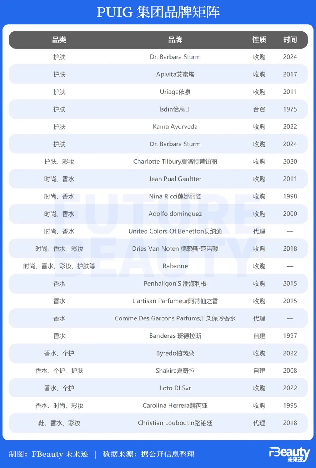 也是在近些年里,PUIG展開一系列收購活動(dòng),先后將彩妝師品牌Charlotte Tilbury、小眾高端香水Byredo、德國(guó)分子護(hù)膚品牌Dr. Barbara Sturm納入麾下。