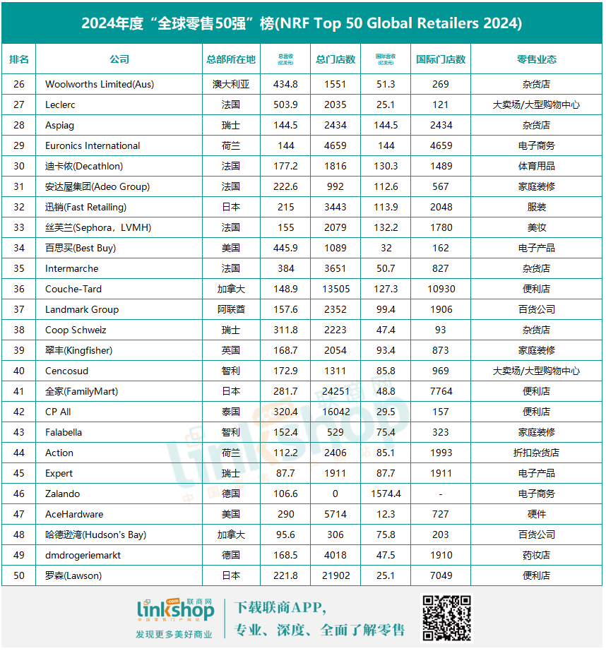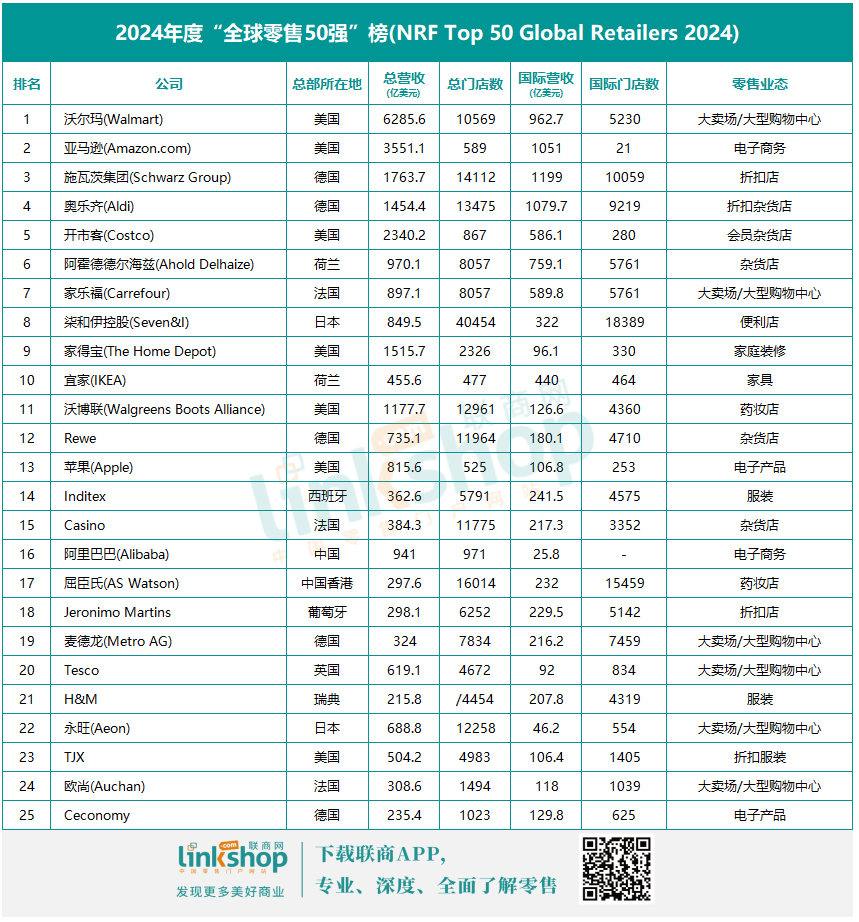 2024“全球零售50強”出爐,中國僅上榜兩家