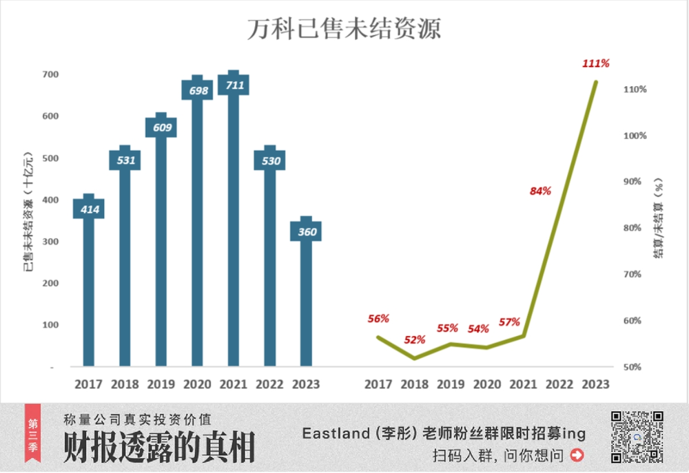 2023年,結(jié)算物業(yè)銷售金額4016年,年末未結(jié)算資源降至3604億,約為2021年末的一半。