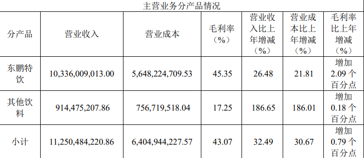 財(cái)報(bào)顯示,去年,東鵬飲料實(shí)現(xiàn)營(yíng)收112.63億元,同比增長(zhǎng)32.42%;歸屬于上市公司股東的凈利潤(rùn)為20.4億元,同比增長(zhǎng)41.60%。東鵬飲料不僅業(yè)績(jī)和歸屬于上市公司股東的凈利潤(rùn)再創(chuàng)新高,業(yè)績(jī)還突破百億大關(guān),成功邁入百億俱樂(lè)部。