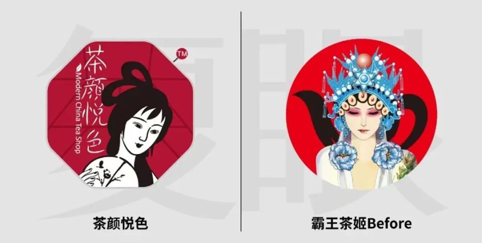 首先是其“國風(fēng)茶飲”的定位,從一開始霸王茶姬就被外界視作是茶顏悅色的模仿者;兩者不僅產(chǎn)品類似,早期的品牌logo形象也都是國風(fēng)裝扮的女性,產(chǎn)品價(jià)格也集中在20元左右。