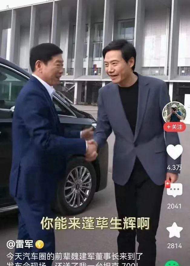在“車企大佬”里,魏建軍應該能最直觀地感受到流量的轟動效應。在小米SU7汽車上市發(fā)布會前,雷軍和魏建軍還互贈車輛,魏建軍贈送雷軍一輛坦克700Hi4-T,雷軍則贈送魏建軍一輛頂配小米SU7。在與雷軍的互動中,長城汽車吸引了不少流量,也推廣了自家品牌。