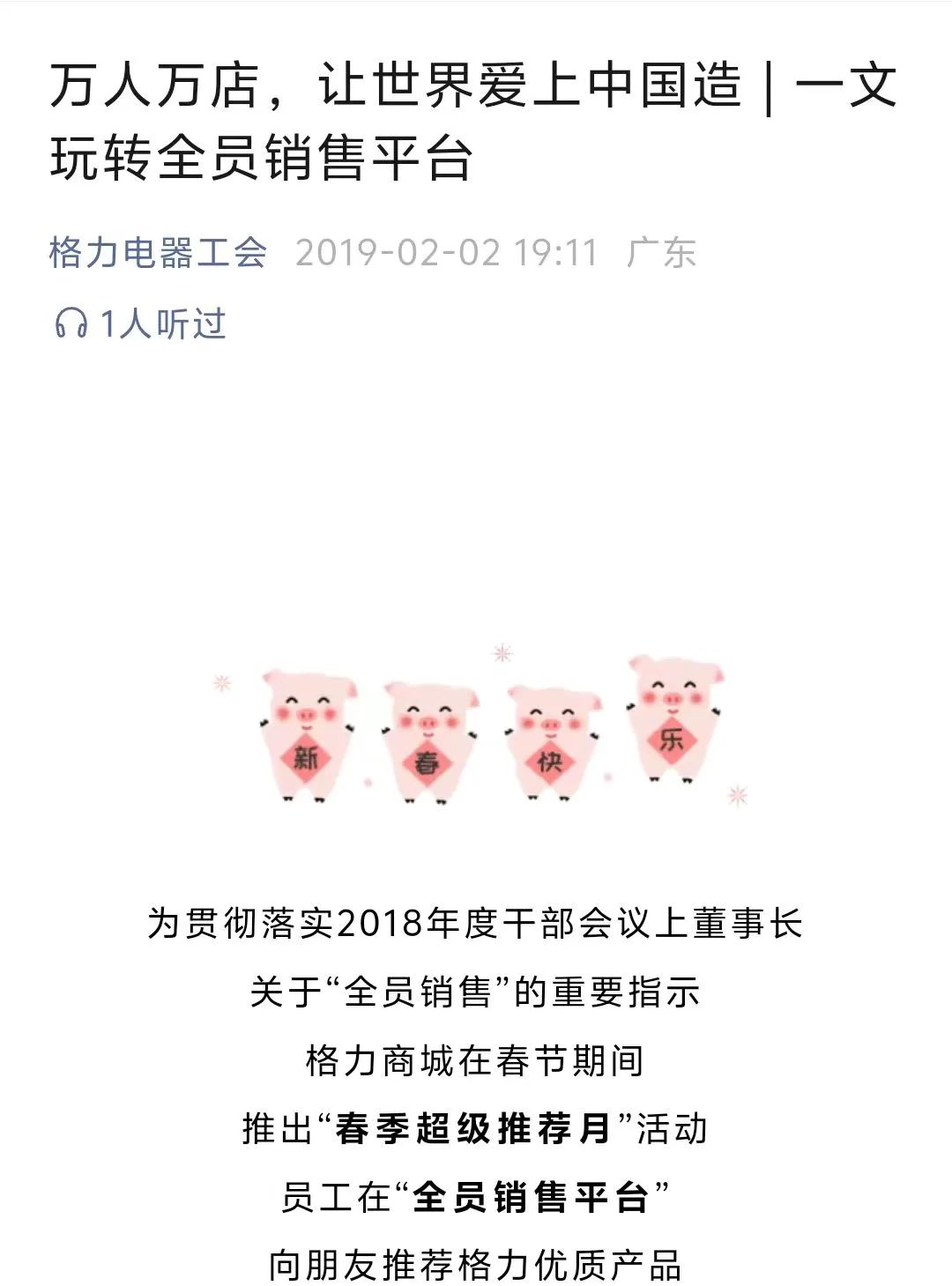 2019年2月初“格力電器工會”公眾號文章,圖源:公眾號截圖