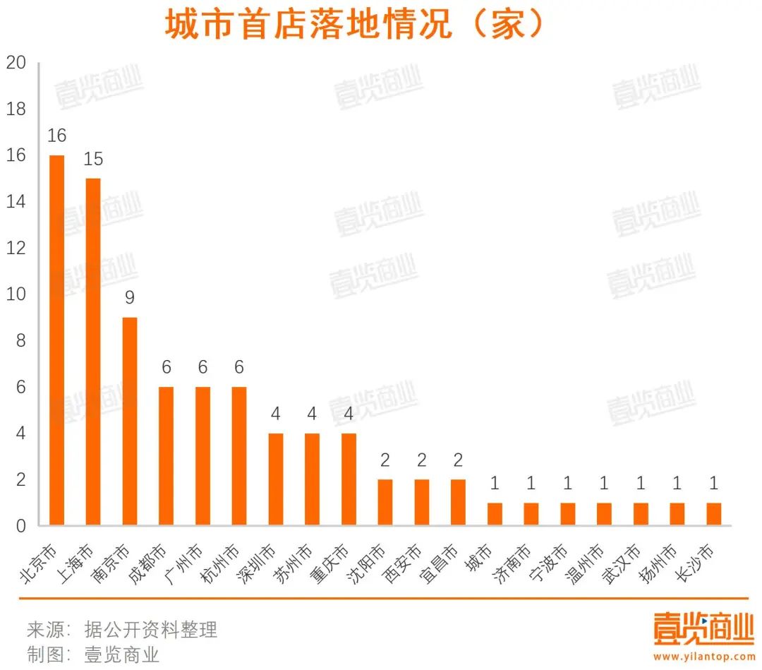 一季度內(nèi),全國首店落地TOP3城市分別為北京、上海、南京,北京以16家全國首店領(lǐng)跑全國;其次是上海,落地了15家全國首店;南京則擁有9家全國首店。