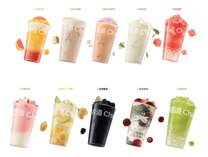 招股書披露,茶百道旗下產(chǎn)品主要包括楊枝甘露、豆乳玉麒麟、西瓜啵啵等經(jīng)典茶飲,以及烏漆嘛黑、茉莉青提等季節(jié)性茶飲及區(qū)域性茶飲,價(jià)格在6元-26元區(qū)間,平均價(jià)格約為14.8元。