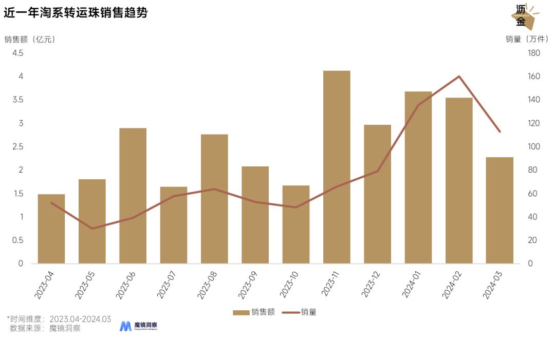 近一年淘系轉運珠銷售趨勢