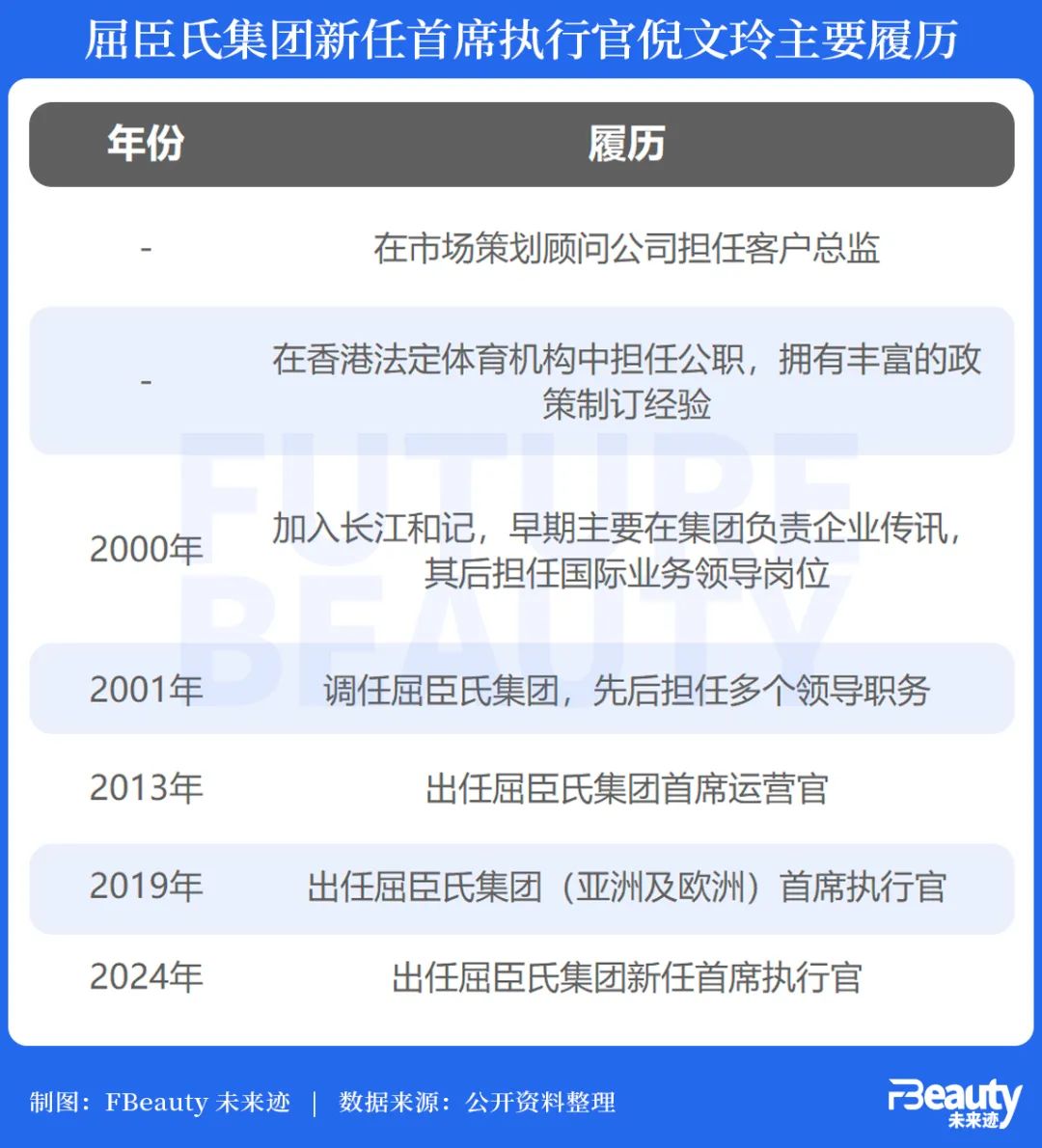 另一位新上任的屈臣氏集團“一把手”為倪文玲,據(jù)屈臣氏集團公告,自2024年5月1日起,現(xiàn)任屈臣氏集團首席運營官兼屈臣氏集團(亞洲和歐洲)首席執(zhí)行官倪文玲將接任黎啟明,成為屈臣氏集團新任首席執(zhí)行官。