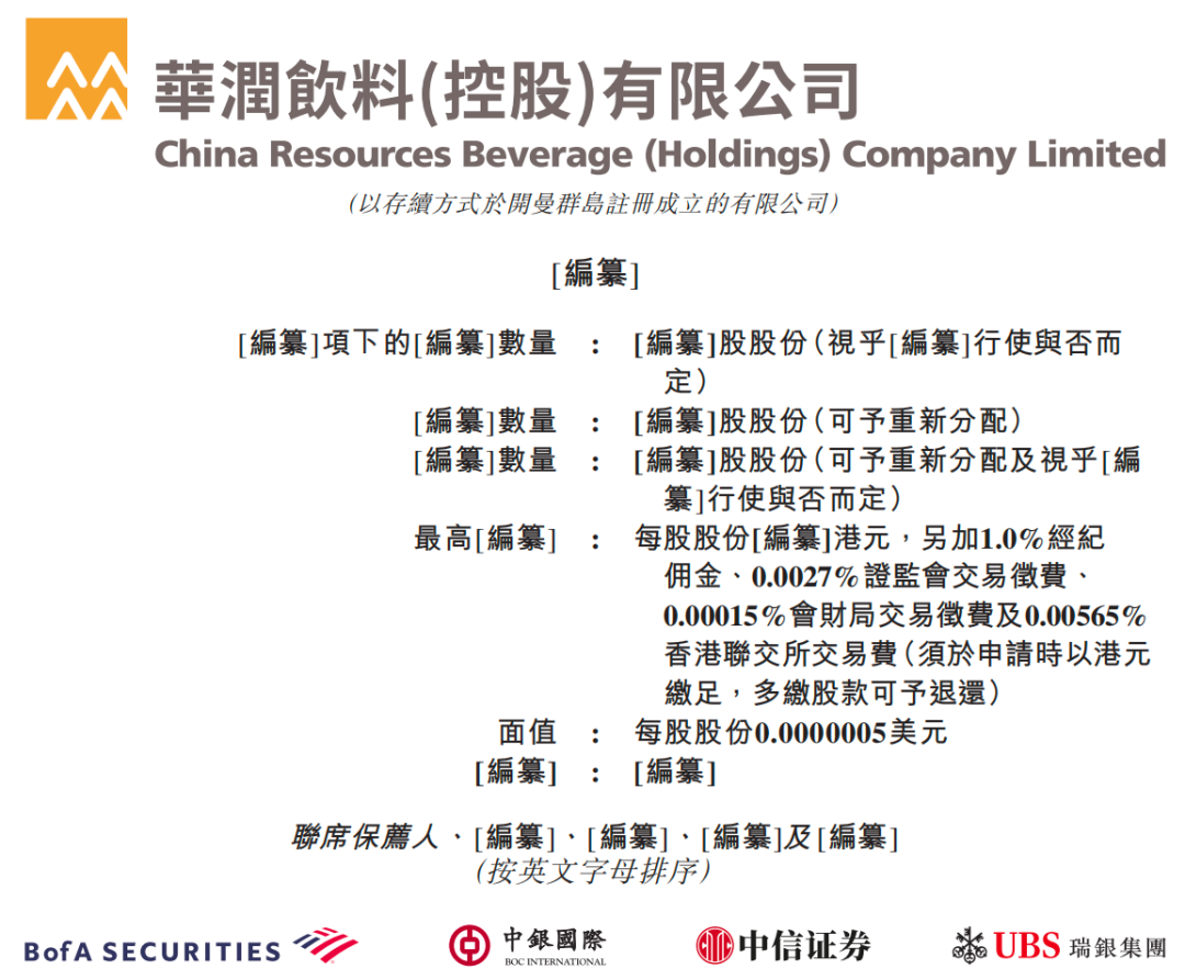 “怡寶”母公司華潤(rùn)飲料遞表港股IPO