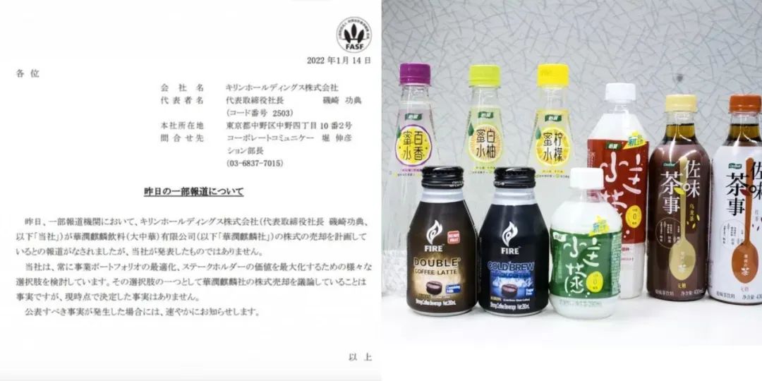2022年1月,日本麒麟發(fā)布出售華潤(rùn)麒麟股份的相關(guān)公告,最終以1150億日元的價(jià)格將合資飲料業(yè)務(wù)賣出,正式結(jié)束了與華潤(rùn)怡寶的合作。