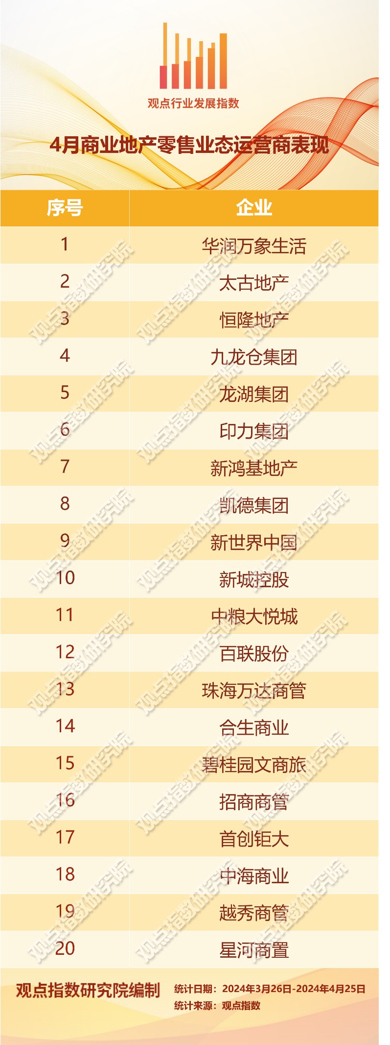 報告期內(nèi),觀點指數(shù)觀察下的樣本企業(yè)推動新項目的熱度明顯下滑,進(jìn)入了開業(yè)淡季。企業(yè)業(yè)績方面,以內(nèi)資為代表的商業(yè)地產(chǎn)企業(yè)錄得的收入明顯增長,輕資產(chǎn)外拓依然是實現(xiàn)規(guī)模增長的重要方式。