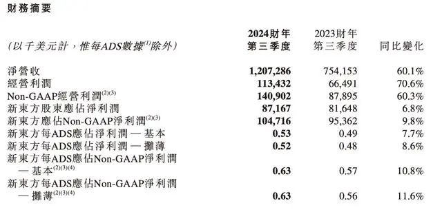 4月24日,新東方發(fā)布2024 財(cái)年第三季度的業(yè)績,其中不乏一些亮眼的數(shù)據(jù):