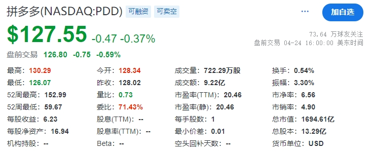 2024年4月24日美股收盤,阿里巴巴最新市值1900.66億美元;拼多多最新市值1694.61億美元;京東最新市值449.98億美元。按照計(jì)算,阿里巴巴市值是京東市值的4.2倍,拼多多市值是京東市值的3.7倍。